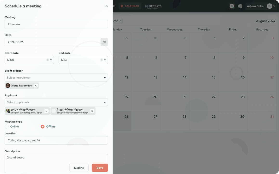 Stay connected with all your candidates directly through our centralized communication features. Send updates, schedule interviews, and maintain engagement.
